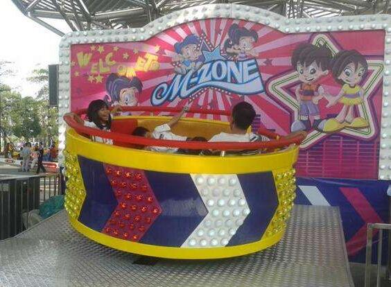 “迪斯科转盘”又名大家颤,太空迪斯科,它是一种常见的游乐设施,很多大型游乐园、公园里就有。它是一个大圆盘,能翻滚,转动做十多种运动。游客就在大圆盘上的沙发上围坐成一周,伴随富有节凑的音乐,身体随着圆盘运动。当人坐在上面时,并不是固定的!圆盘运行时如大海波涛颠簸起伏,又如太空飞碟,变化无穷,时快时慢。迪斯科转盘是陀螺类回转游乐设备。游客乘坐的吊箱在强离心力作用下,旋转翻飞,仿佛被推入超越时空的天体,翻江倒海,天旋地转,惊心动魄的刺激,风驰快感,令人回味无穷。乘客紧紧吸俯在座舱,身体不再属于自己,把一切交给可以信任的星之力游乐设备,你只要紧紧抓住以此成功的机会,就可以实现内心的自我。让耳旁呼呼的风声伴随你每一次完成的喜悦,胜利往往属于勇敢者。迪斯科转盘玩法是你坐在座位上,到了最高点,一震一上一下,就会从座位上摔下来。迪斯科转盘的价钱是10—15元(不过,有些大型娱乐场所如欢乐谷20—35元都有)在大部分城市的乐园都有。